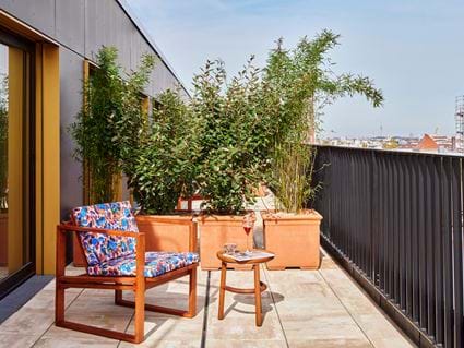Den perfekte balance mellem inde og ude, med din egen møblerede tagterrasse og vidstrakt byudsigt.