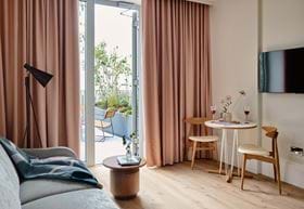 Not into open-plan? These 30m² One Bedroom Suites have a sliding door separating the bed from a spacious living area.